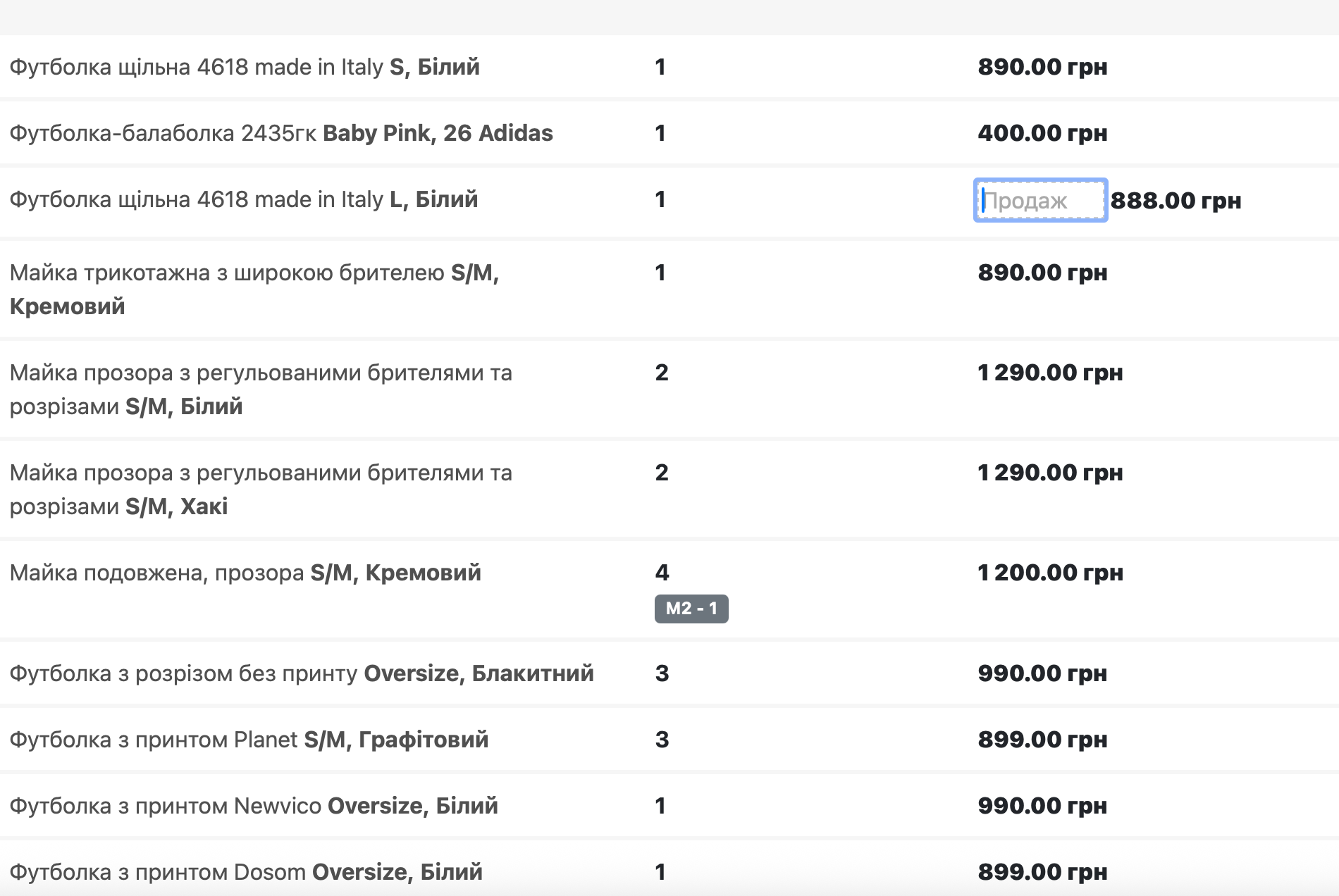 Натискаєте заголовок колонки "Ціна", і система сама покаже, що знає про кожну позицію. Автоматично призначені ціни підсвічуються, а якщо ви зміните ціну вручну - система це теж відобразить. Усе під контролем і без зайвих рухів.