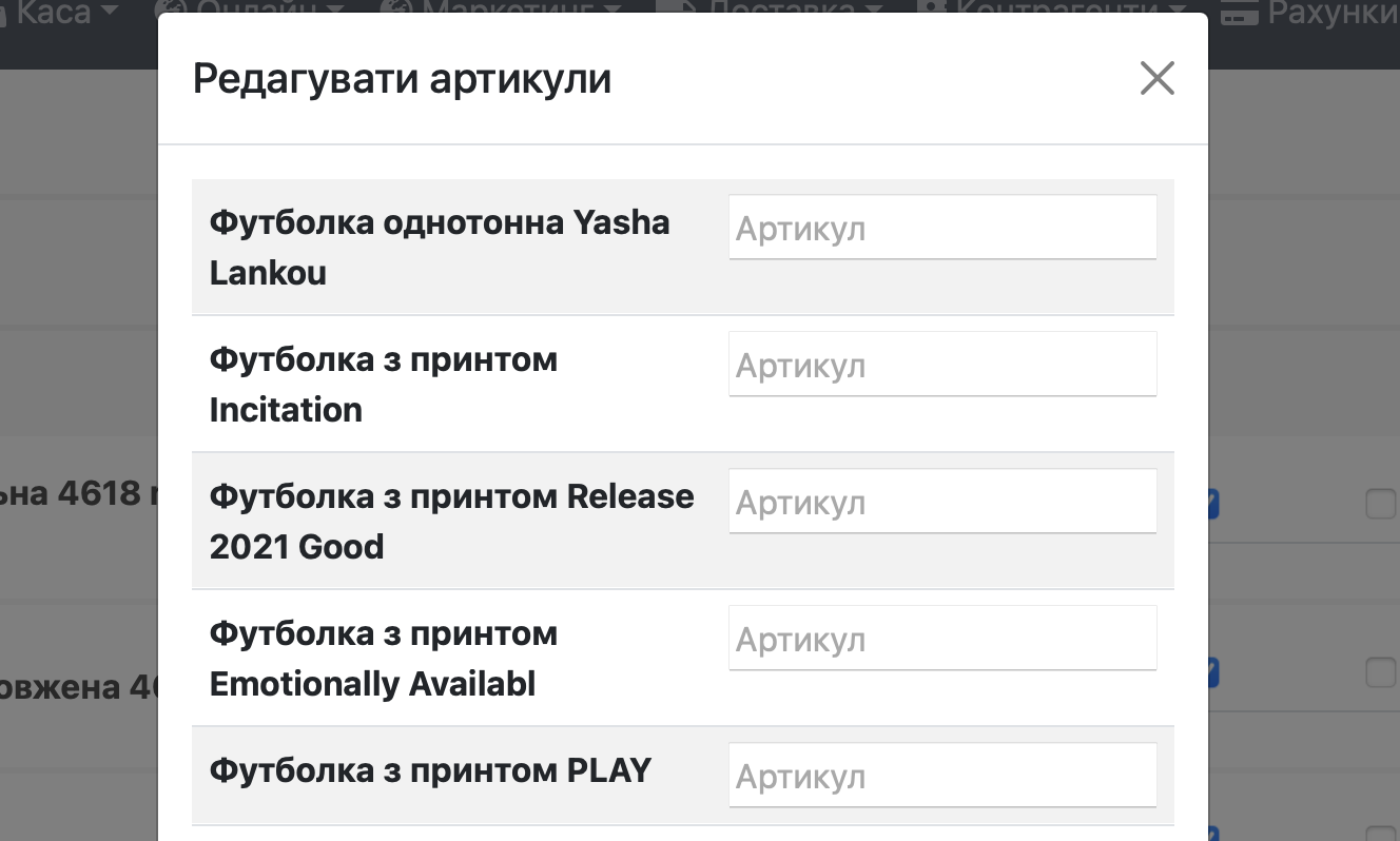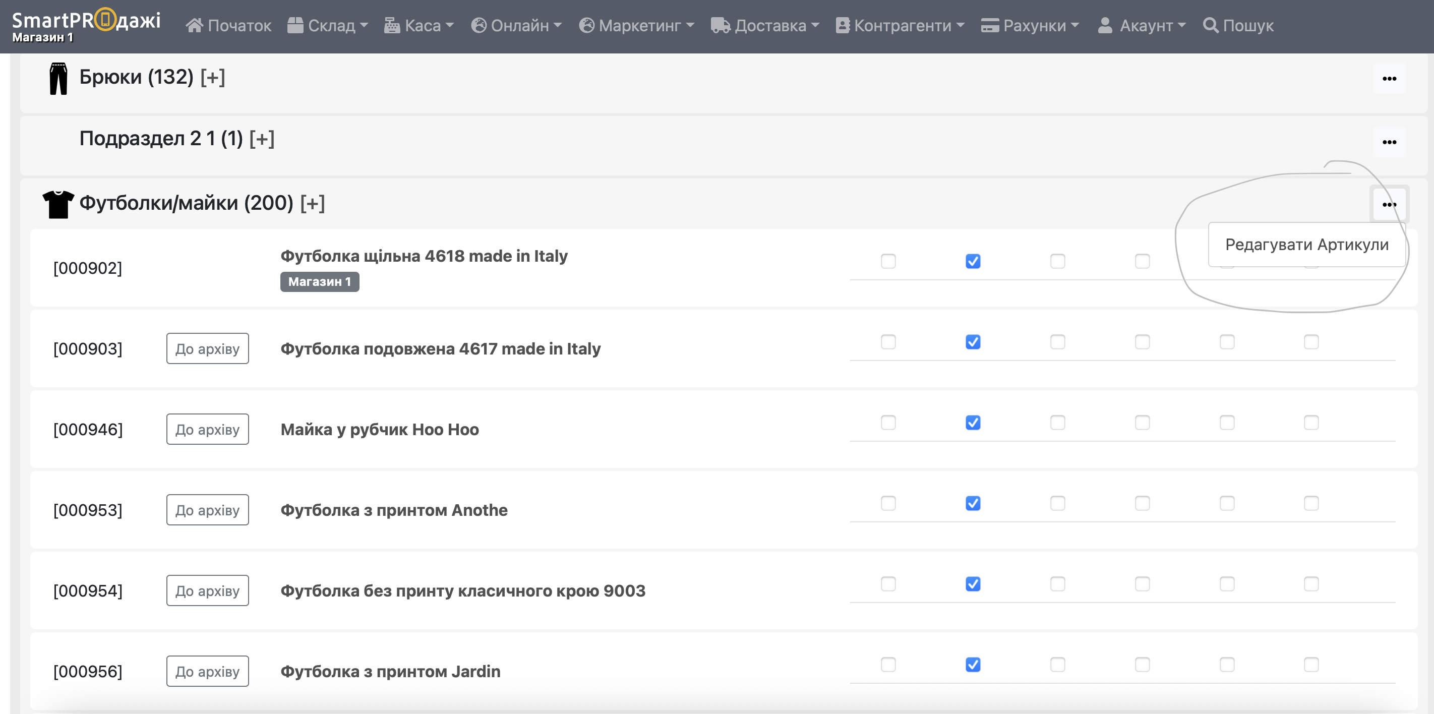 Тепер не потрібно відкривати кожну позицію номенклатури окремо, щоб додати артикули - просто натискаєте на необхідній категорії номенклатури на "...", далі «Редагувати артикули» й додаєте всі артикули одразу. Зручно, швидко та без зайвих кліків!