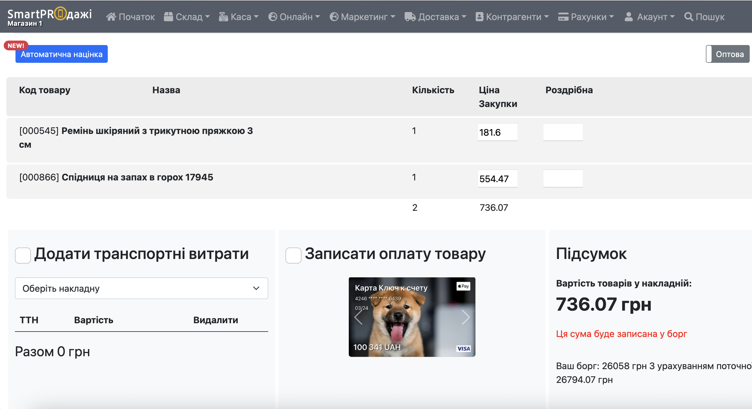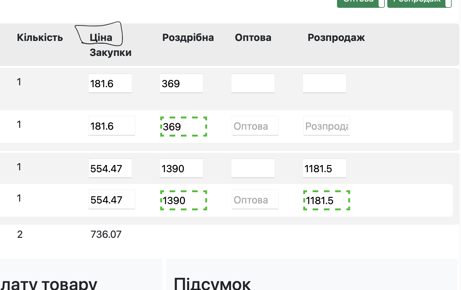 Якщо товар вже був у вас на складі - система автоматично підтягне всі відомі ціни: закупки, роздрібні оптові, розпродажні тощо.