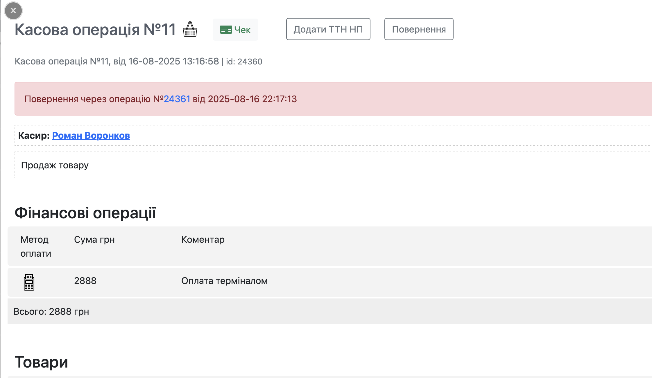 Щоб касиру не довелось шукати касову операцію, у якій був продаж товару, що необхідно знайти або оформити повернення - достатньо відсканувати штрих-код чека прямо в касовому апараті - і необхідна касова операція відкриється прямо тут.