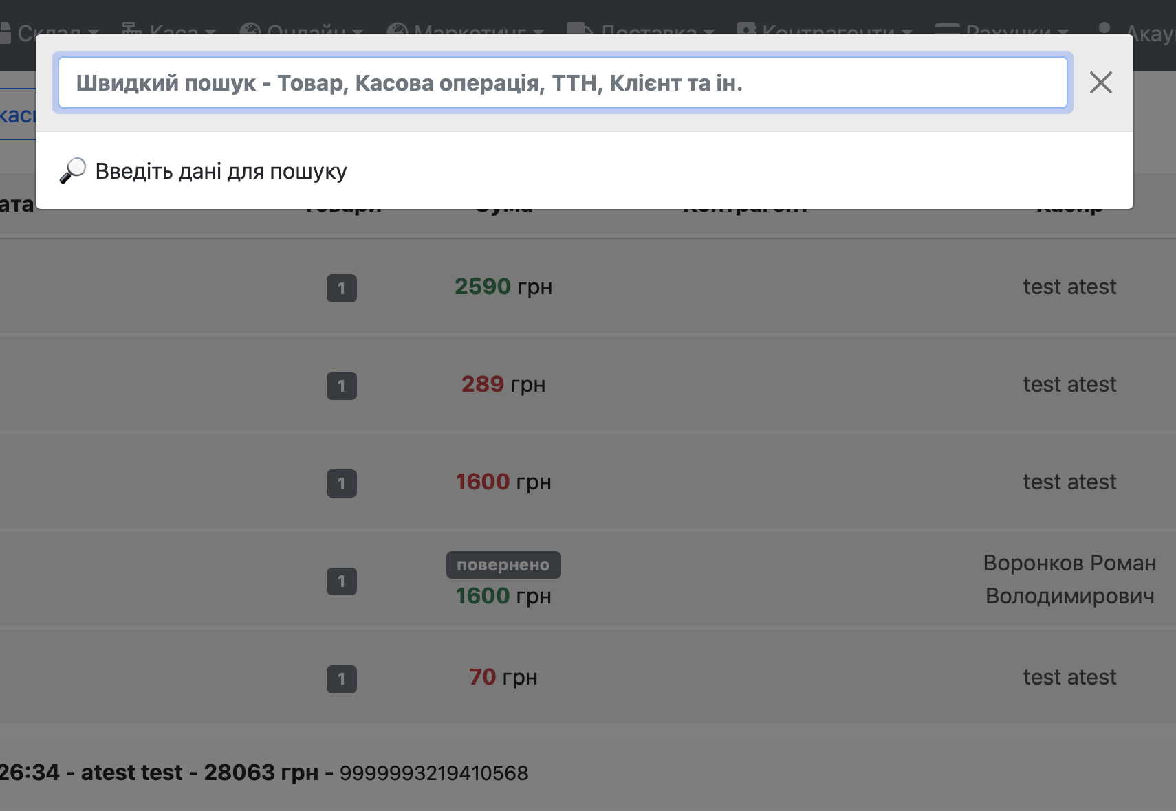Додали функцію глобального пошуку по системі. Вона допоможе з будь-якого меню знайти що завгодно: клієнта, постачальника, товар, накладну, касову операцію, тощо...
