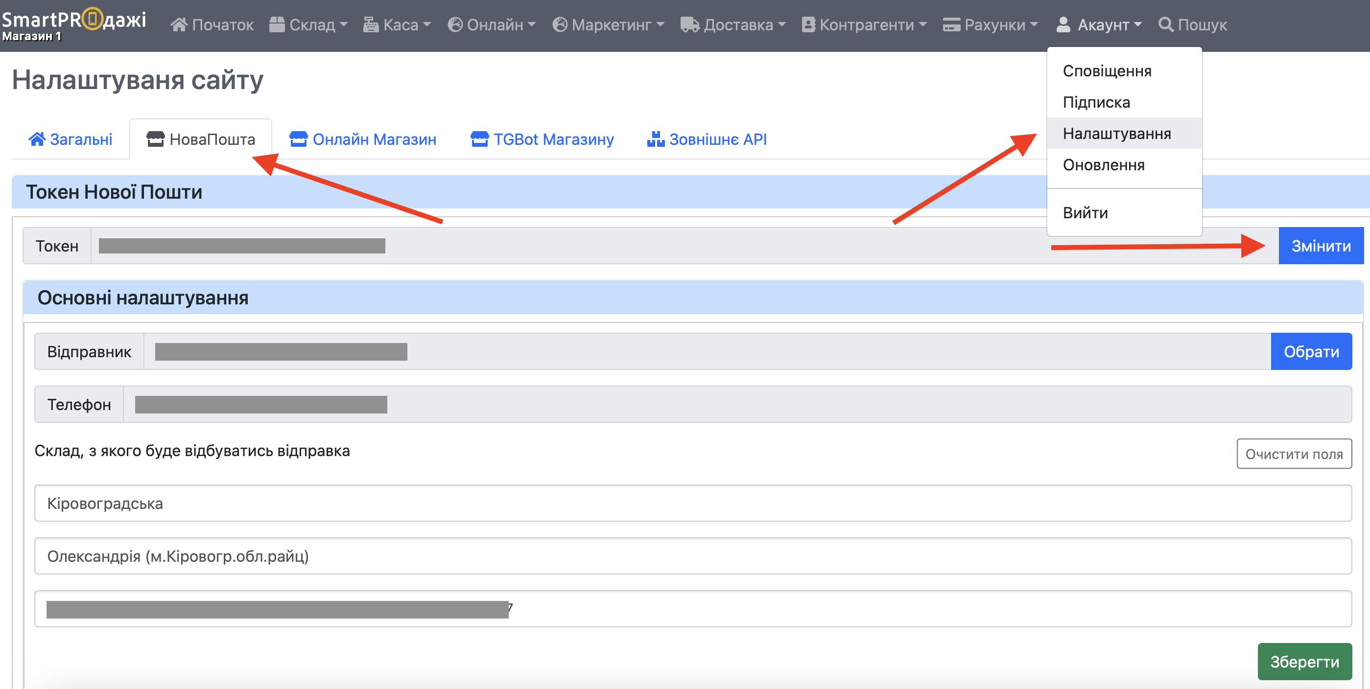 Токен нової пошти - це спеціальний зашифрований набір символів, що використовується для інтеграції сервісу з іншими. Згенерувати токен можна, як показано у відео, в особистому кабінеті Нової Пошти. Далі згенерований токен перенесіть у розділ Акаунти/Налаштування у вкладку Нова Пошта і замініть його на старий.